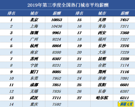 據(jù)前程無憂人力資源調(diào)研中心數(shù)據(jù)顯示,2019年第三季度27個熱門城市當中,有13個城市薪酬較第二季度略有下降,其中東莞薪酬降幅相對明顯,東莞 “出口依存度”較高,受貿(mào)易戰(zhàn)影響,工業(yè)生產(chǎn)有所回落,進出口增速放緩,經(jīng)濟受到一定影響。